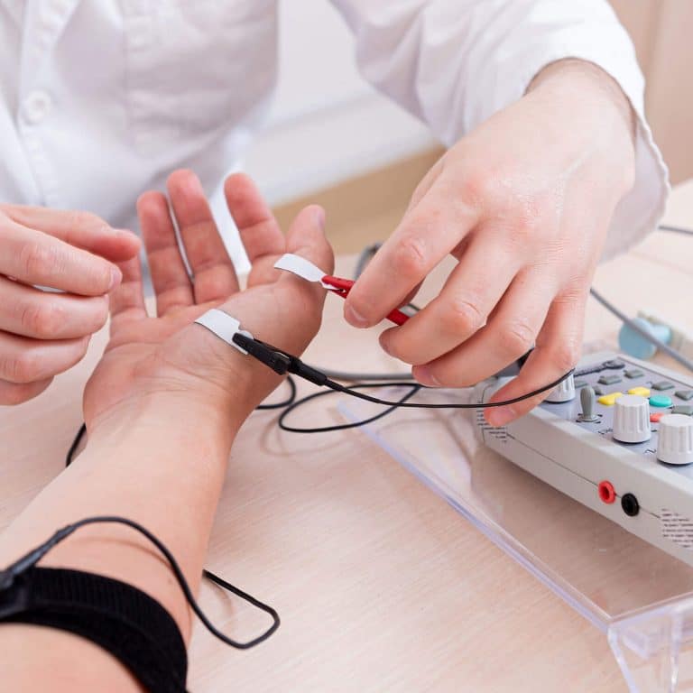 An electromyography (EMG) is a test that evaluates the health of your muscles and the nerves that control them. It helps diagnose conditions such as peripheral neuropathy, carpal tunnel syndrome, radiculopathy (pinched nerves), myopathy, and ALS and other motor neuron disorders. During the test, a small needle electrode is inserted into selected muscles to record electrical activity, and sometimes nerve conduction studies (NCS) are performed to measure how well signals travel along your nerves. Patients generally describe the test as mildly uncomfortable but not painful.